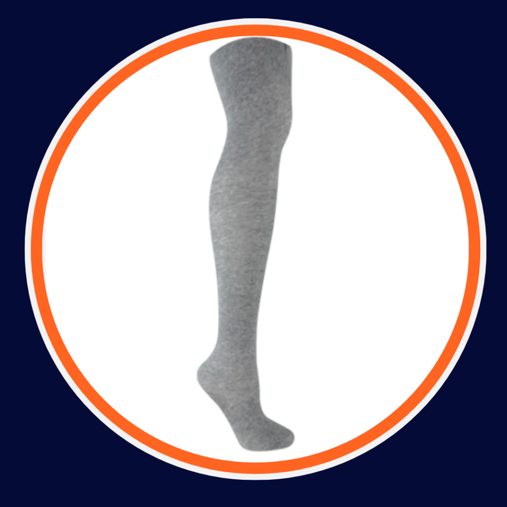 Meias até o joelho, confeccionadas em trama circular, contendo em peso 97% de fibra Poliéster e 3% Elastano, tamanho adulto.