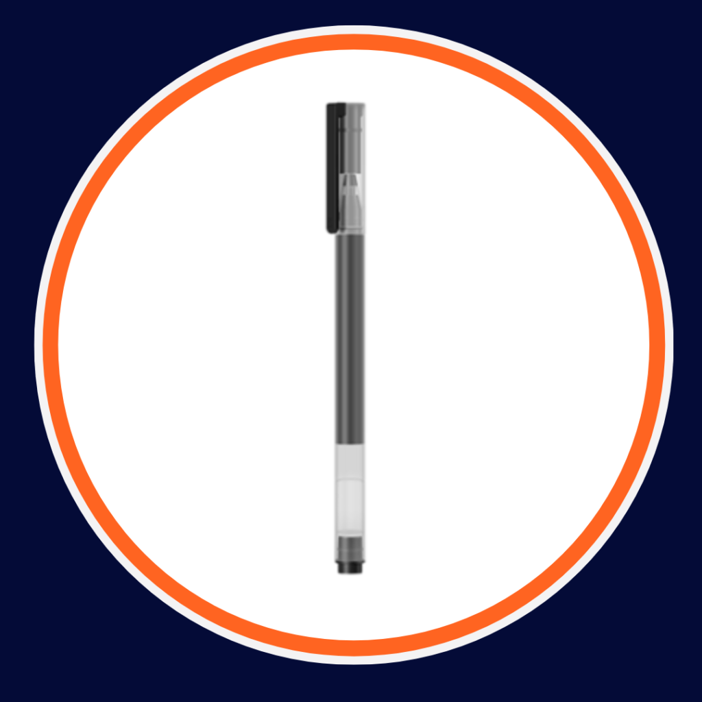 Canetas em gel, cor preta com ponta grossa e opaca, espessura 0.5mm, para uso em escritório, sem marca.