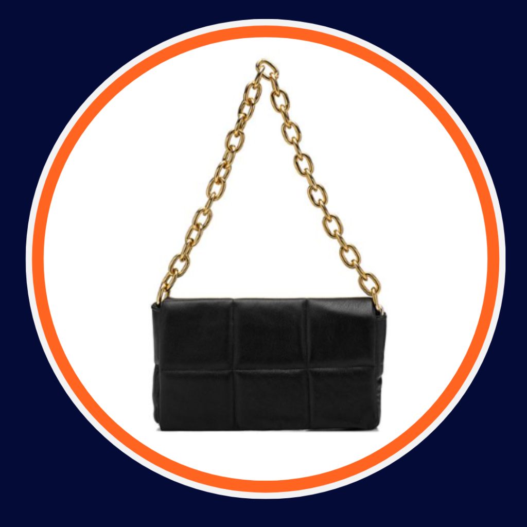 Bolsa feminina de ombro, com superfície exterior em folhas de plástico flexível. Composição: 100% Poliuretano.