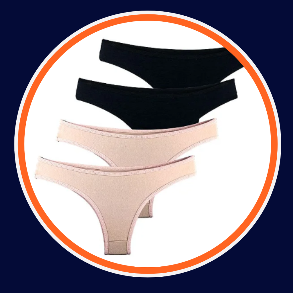 Calcinha  de fibras sintéticas ou artificiais de uso feminino. Composição: 95,4% poliéster e 4,6% elastano. Tamanho: adulto. Com forro parcial. Sem desenho/bordado.